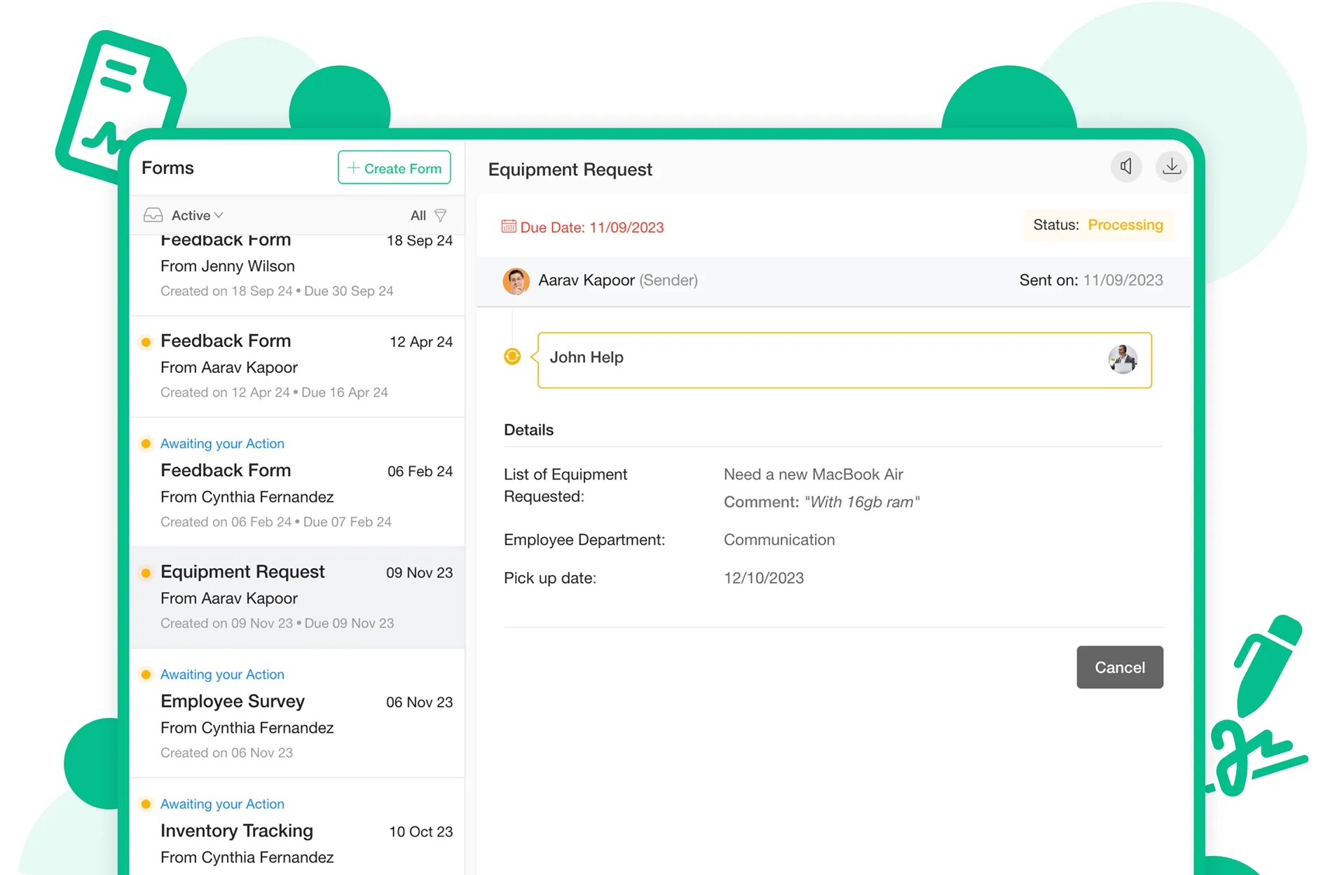 Collect feedback, requests, or important data with embedded forms, simplifying workflows and reducing the need for separate tools or apps.